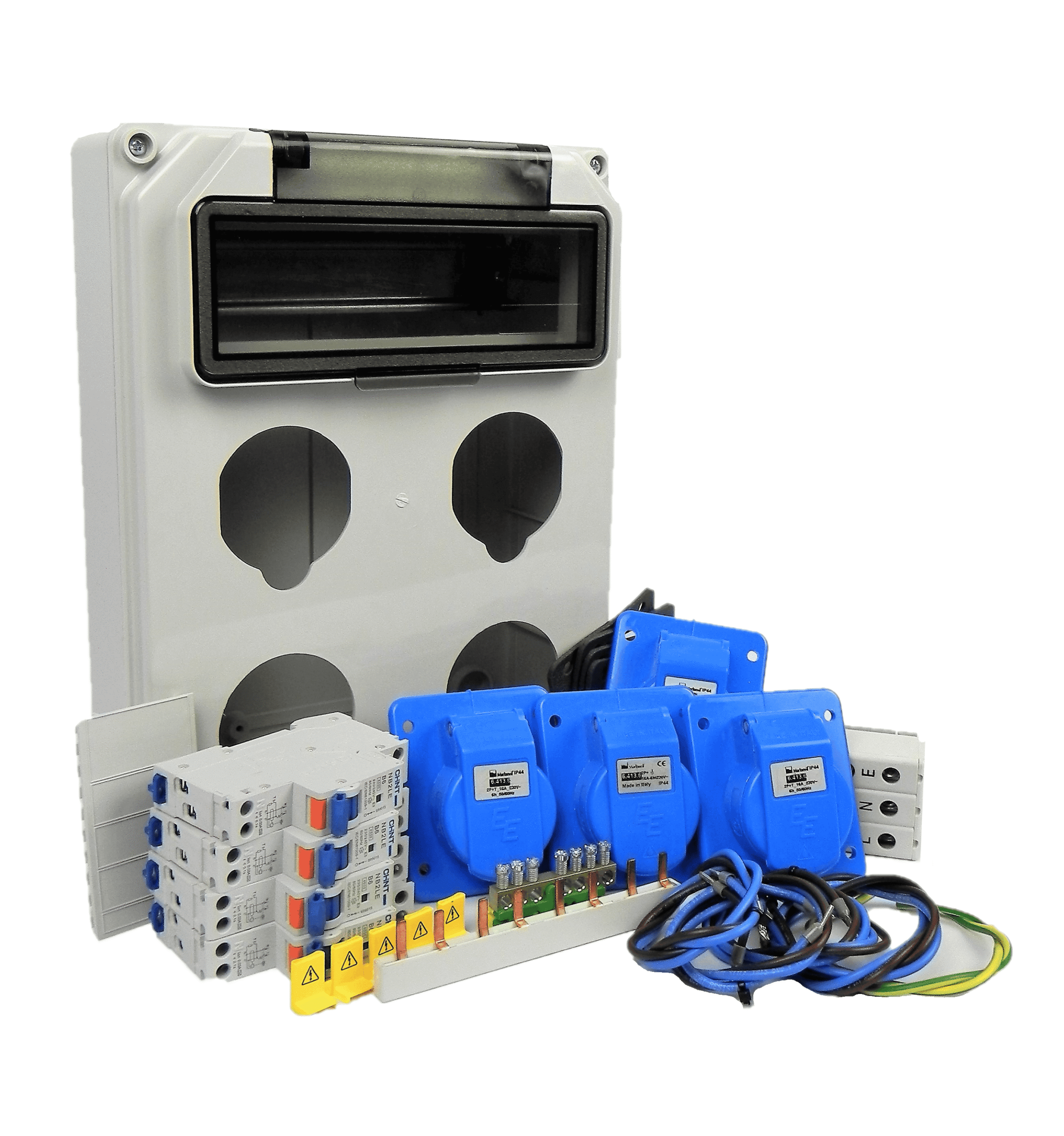 Wir führen ein breites Sortiment an elektrischem Zubehör, das von Fehlerstromschutzschaltern und kWh-Zählern bis hin zu Einbausteckdosen und verschiedenen Steckern reicht.