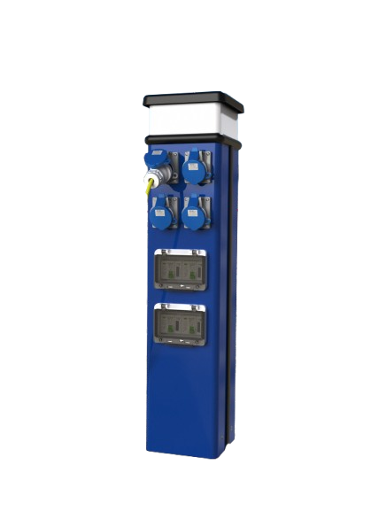 Entdecken Sie verschiedene freizeittechnische Einrichtungen für Campingplätze, darunter Verteilerkästen und Stromsäulen mit Zubehör, Wasseranlagen und Rettungsstationen.