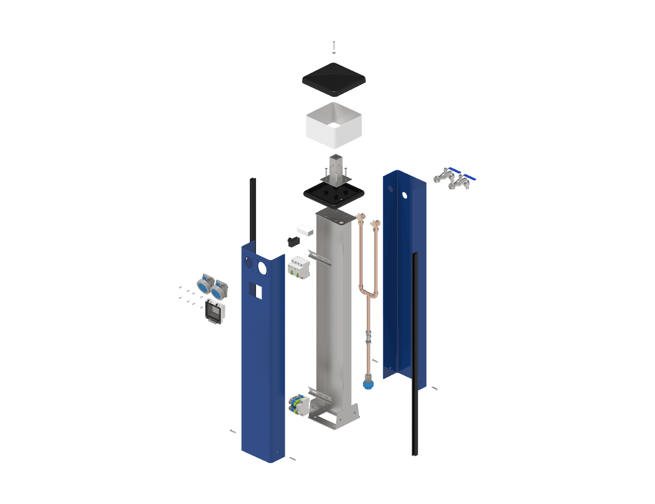 Diese Stromsäule ist 1000 mm hoch (ohne Beleuchtung) und verfügt über 2 Steckdosen.