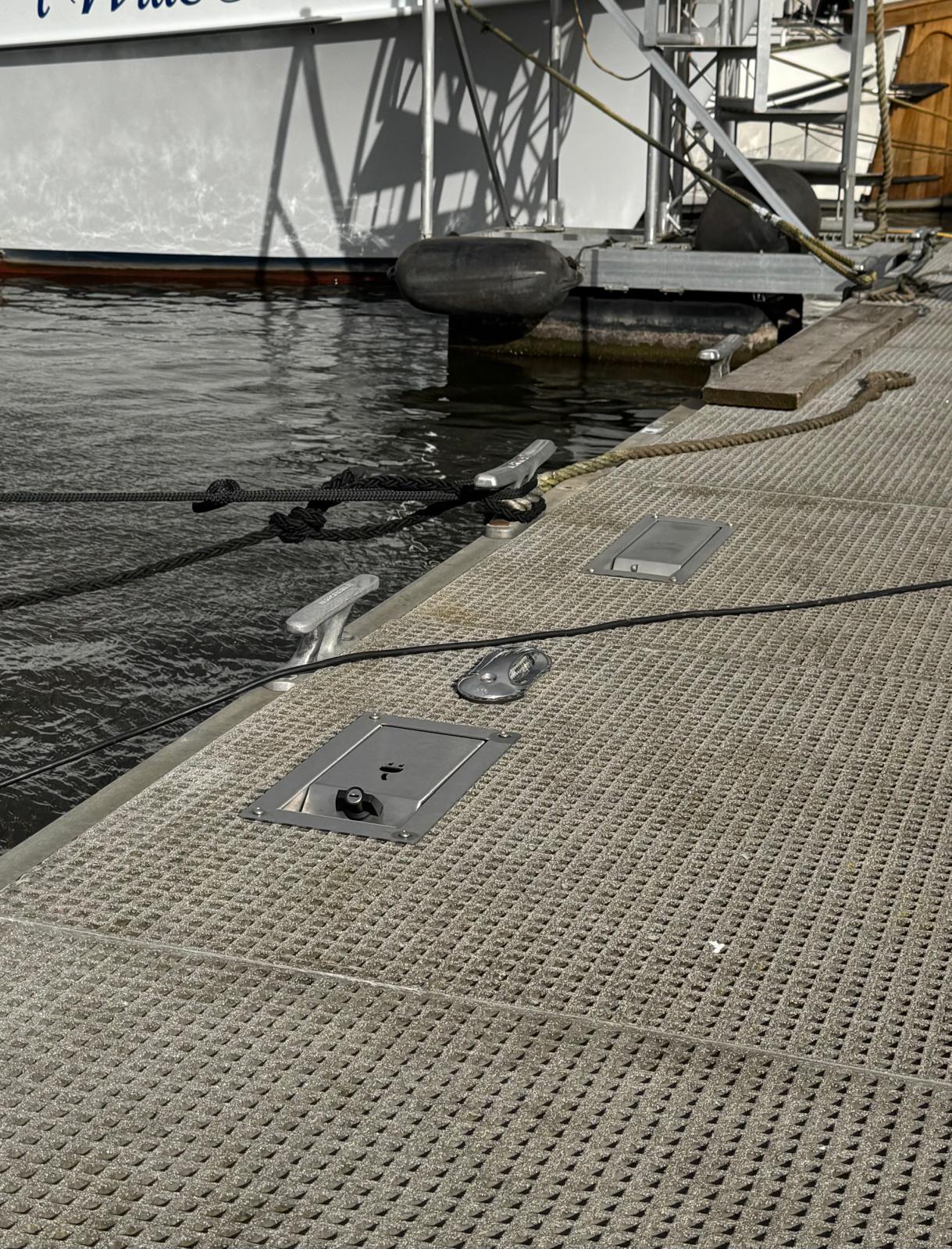 Een belangrijk onderdeel binnen dit project is de toepassing van de DeckClear-oplossing. Hierbij is de elektrische aansluiting volledig weggewerkt in de steiger. Dit zorgt voor een strak geheel en voorkomt losse kabels op de steiger, wat de veiligheid en het gebruiksgemak aanzienlijk verbetert. Deze oplossing sluit perfect aan bij de wensen van een moderne jachthaven.